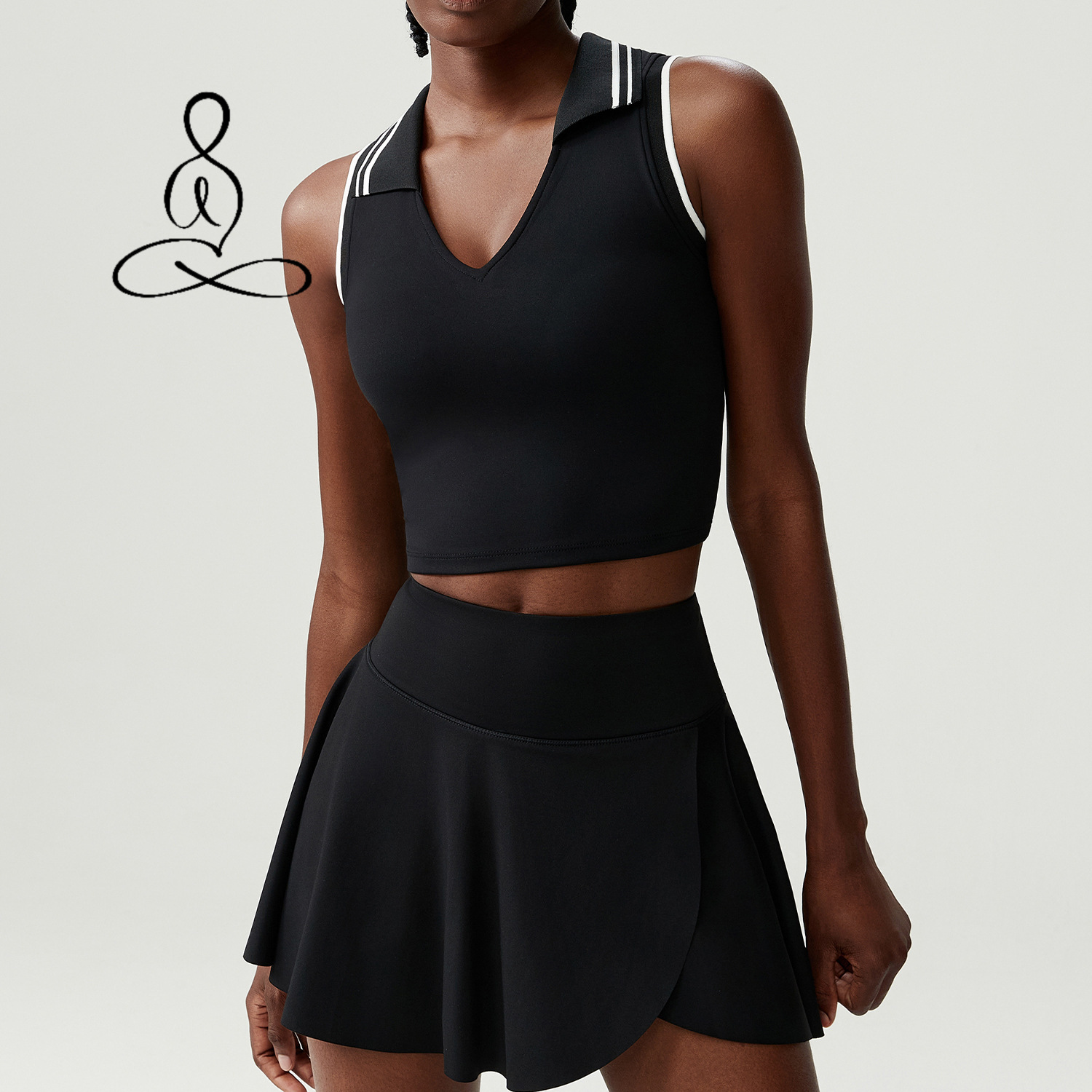 跨境性感美背高尔夫网球裙连体衣跑步运动防走光瑜伽服健身短裙女