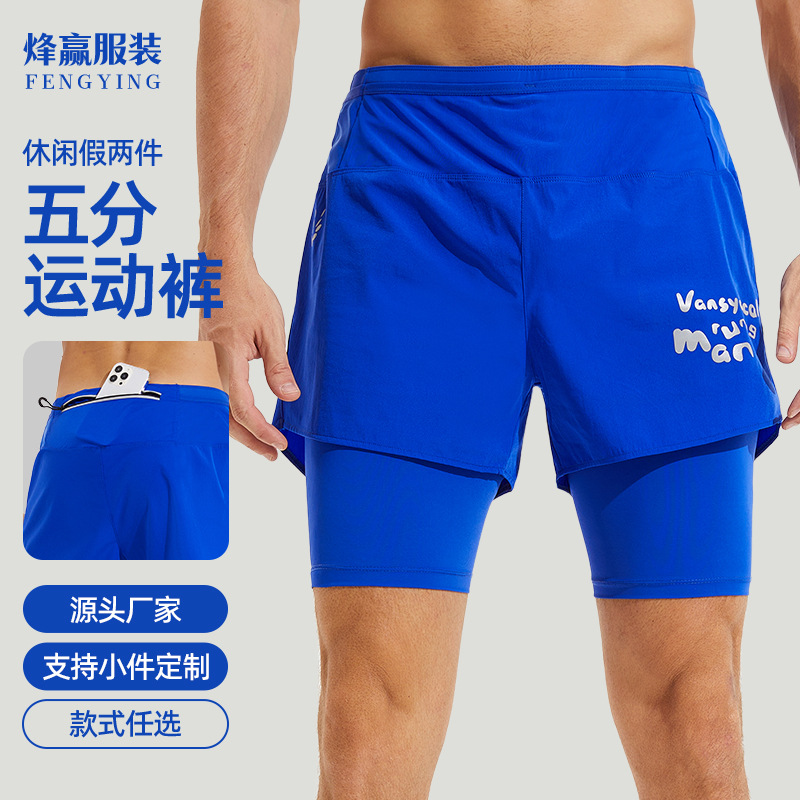 Celana pendek olahraga pria model dua potong palsu, elastis, longgar, untuk maraton, musim semi dan panas, model tipis, grosir A043
