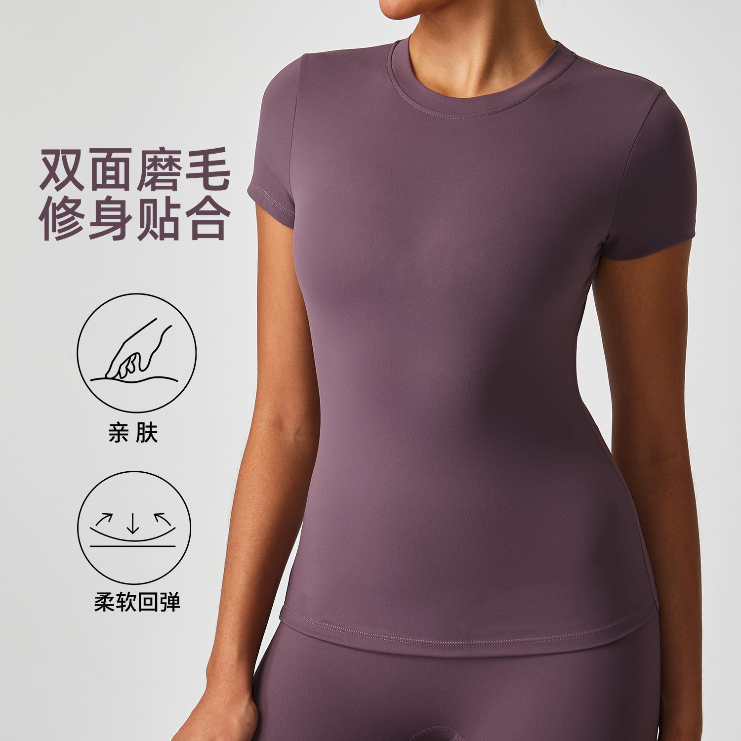 Pakaian yoga berbahan elastis tinggi, atasan kebugaran wanita lengan pendek yang pas di badan, kaos olahraga dan santai untuk lari di luar ruangan, serbaguna