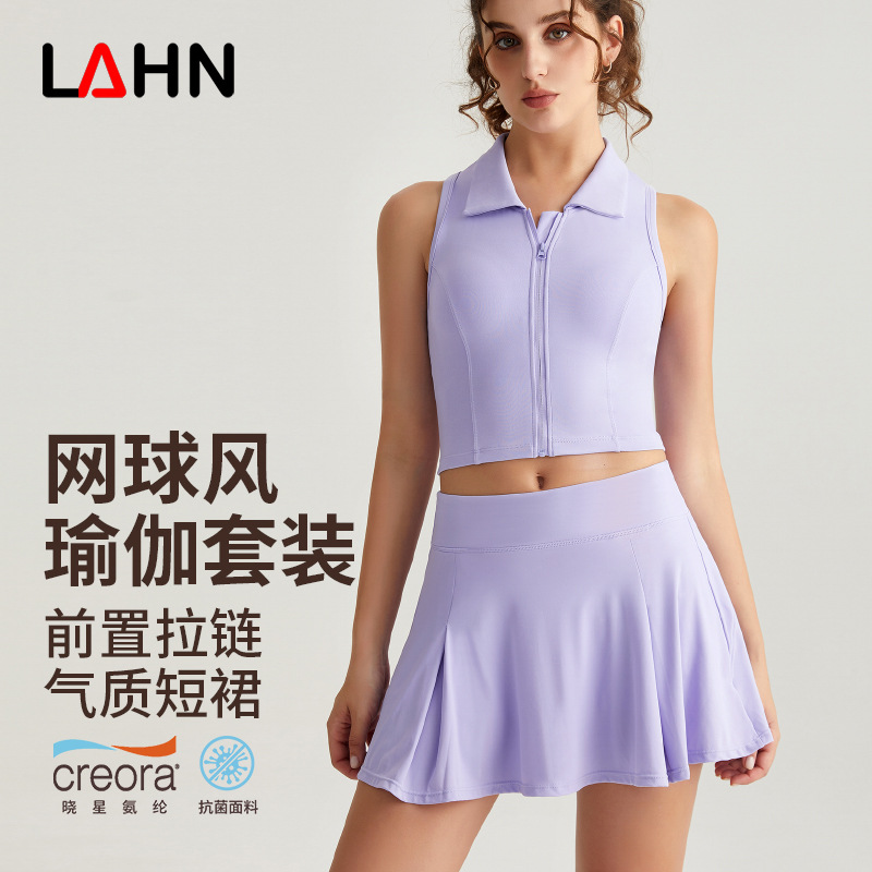 LAHN新款瑜伽套装女户外运动背心上衣健身服防走光运动裙瑜伽服