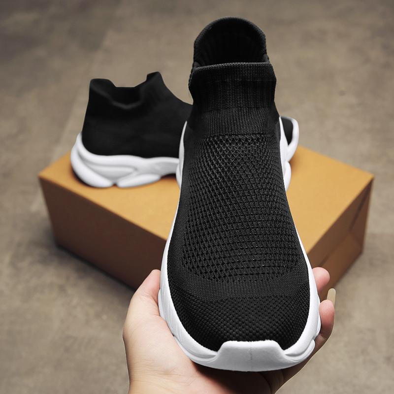 Sepatu grosir pria, sepatu kaus kaki pria gaya Korea serbaguna trendi, sepatu jala kasual, sepatu olahraga rajut ringan musim semi 2024