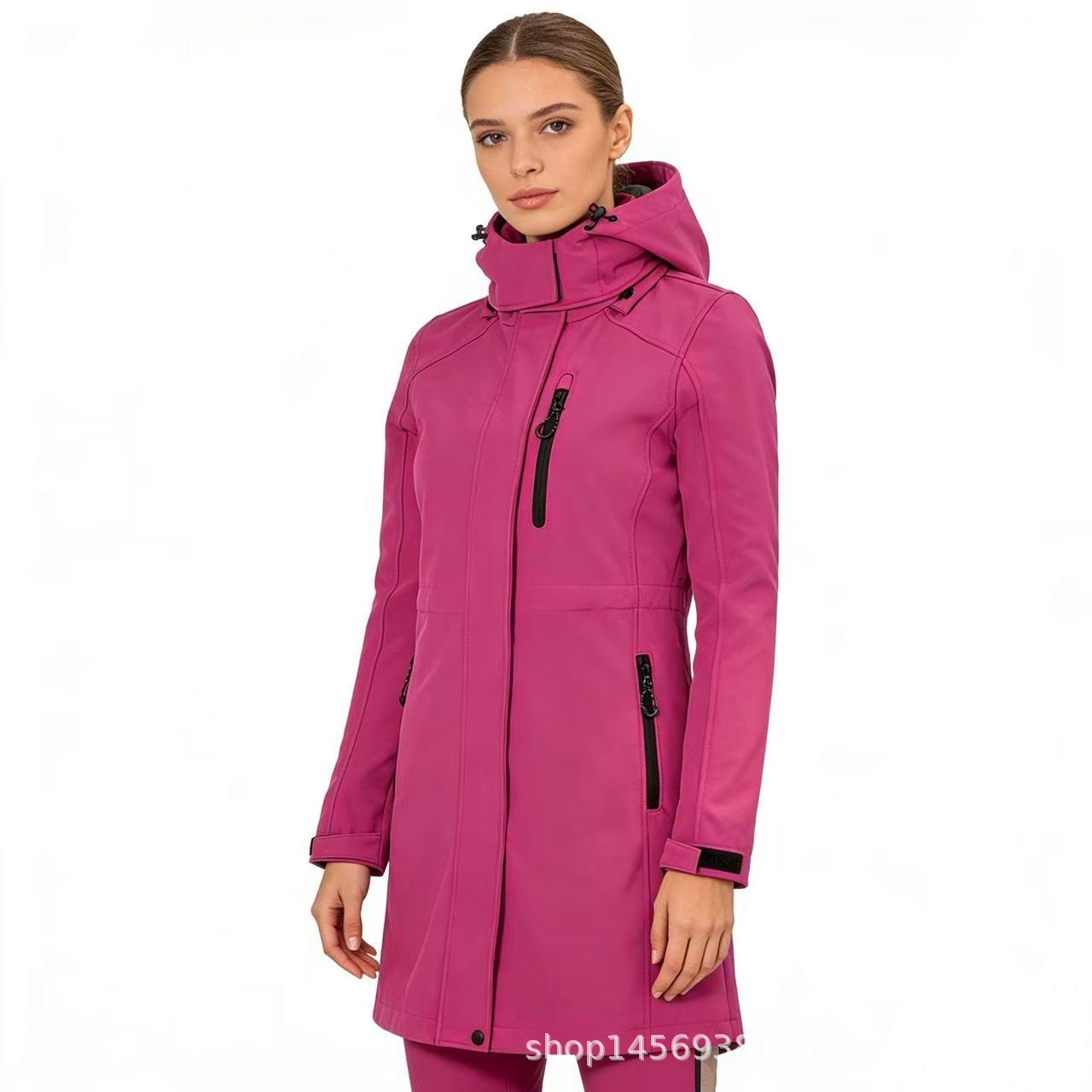 Jaket olahraga cangkang lunak untuk wanita, jaket olahraga berkemah mendaki gunung santai versi ringan, jaket cangkang lunak beludru komposit