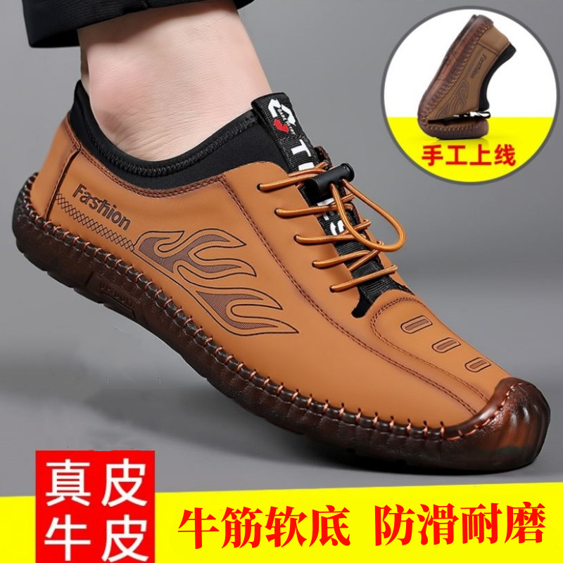 Sepatu kulit pria, luar tunggal sepatu pria lapisan pertama sepatu kulit kasual pria low-top dapat bernafas sepatu skate Inggris sol lembut sepatu mengemudi