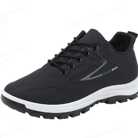 Sepatu pria kasual, sepatu kerja baru musim gugur dan musim dingin kulit tahan air sepatu olahraga anti selip deodoran hitam sol lembut