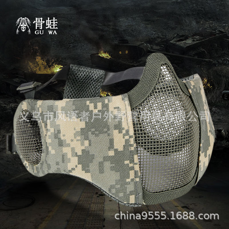 Masker CS kipas militer luar ruangan anti-benturan ditingkatkan perlindungan telinga penutup wajah baja mata pertempuran katak tulang