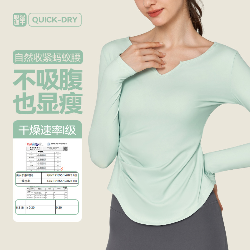 Pakaian Yoga Kerah V Musim Gugur Musim Dingin Baju Atasan Olahraga Kebugaran Latihan Sederhana Warna Solid Lengan Panjang Baju Cepat Kering Bernapas Berlari Luar Ruangan