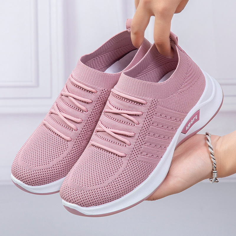 Sepatu wanita 2023 lintas batas fashion kasual baru sneaker flying woven kaus kaki sepatu lari datar perdagangan luar negeri sepatu wanita
