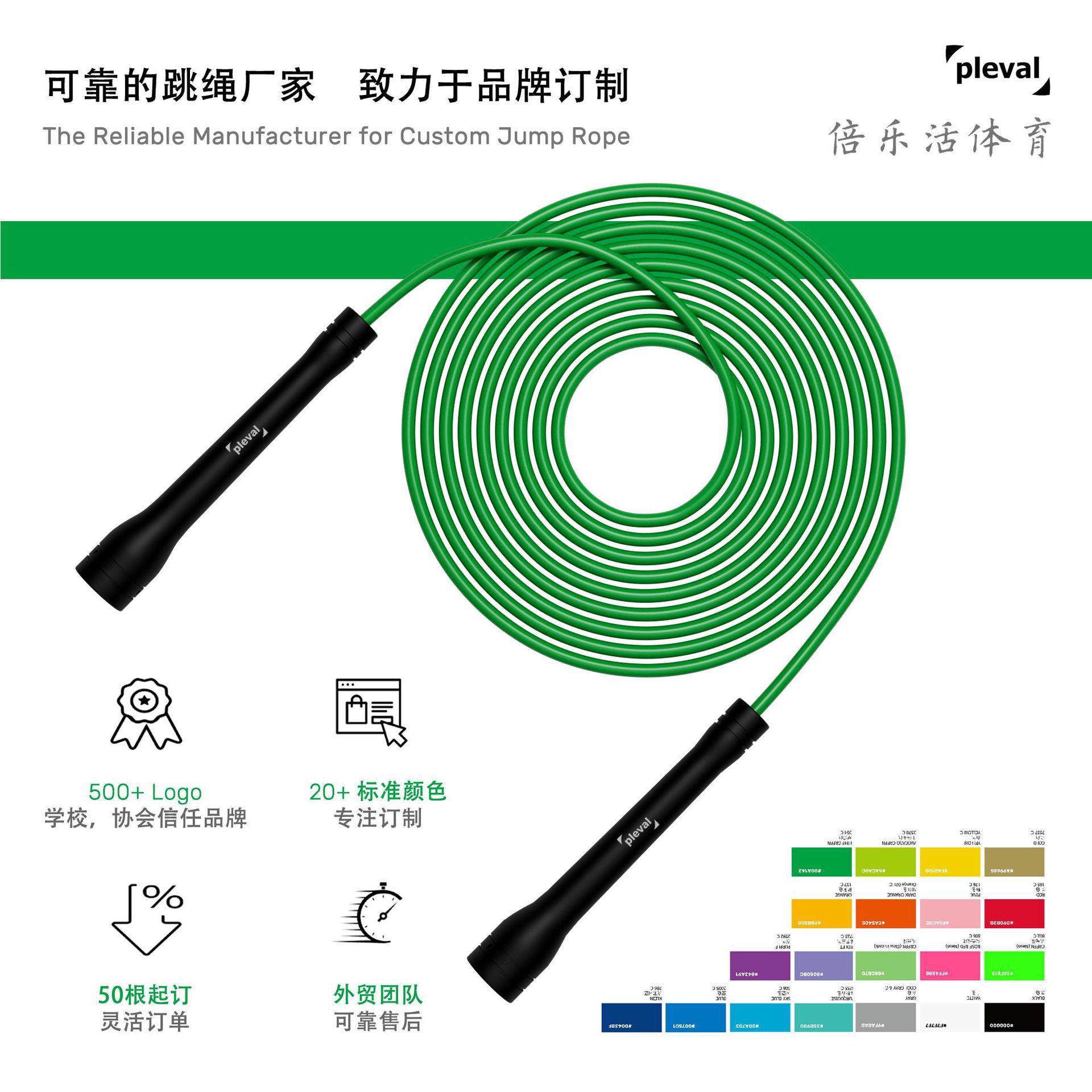 5.0mm短手柄跳绳竞速防滑中考训练健身运动绳PVC花式绳厂家有跳绳
