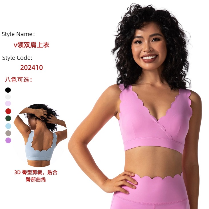 Baju Yoga Olahraga Olahraga Berlari dan Latihan Kebugaran Bra Yoga Berukuran V Pinggang Renda Dada dengan Bantalan Dada