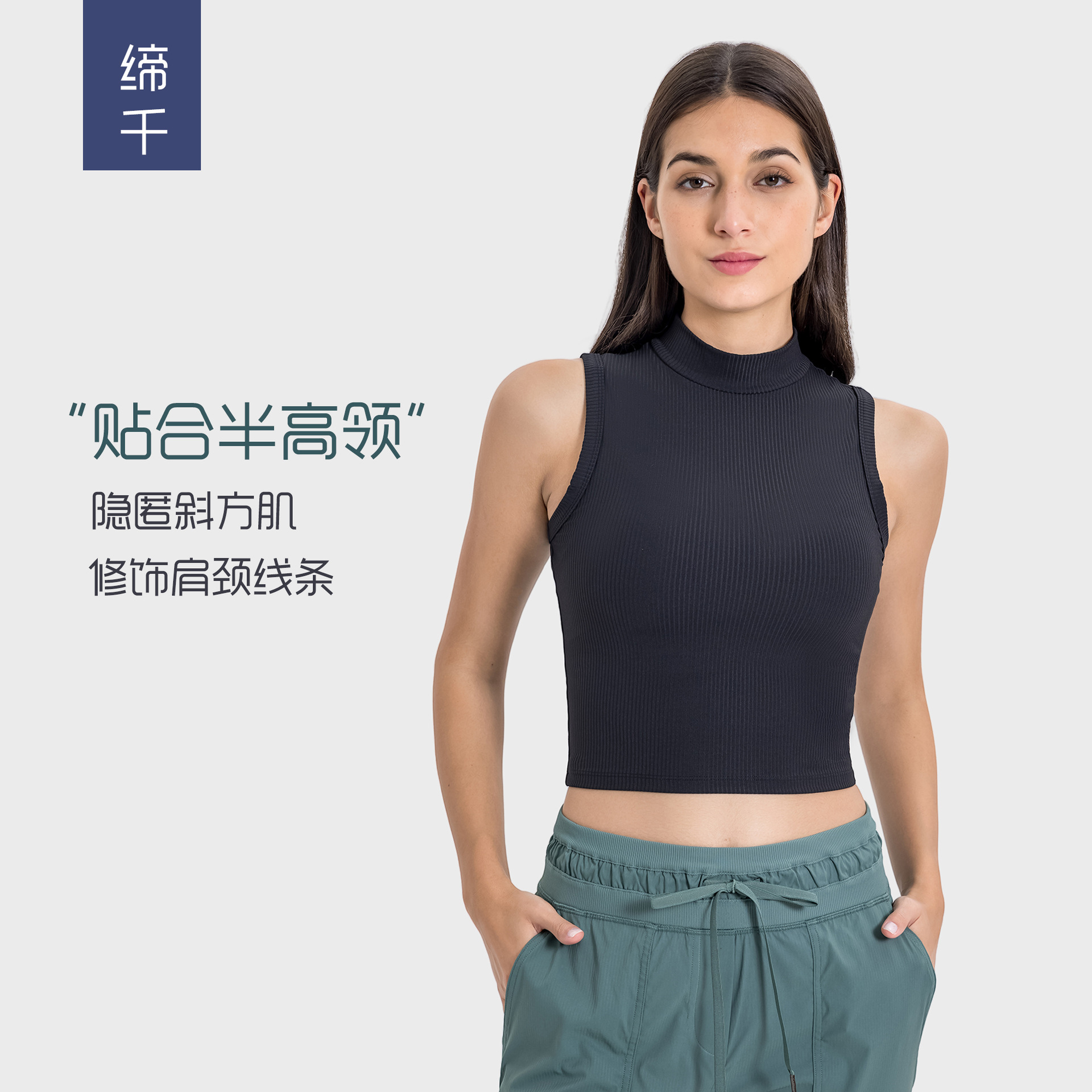 Vertikal rib 2.0 baru berpendingin air pendingin turtleneck rompi yoga kelembaban menyerap pinggang ketat anti-seismik rompi olahraga
