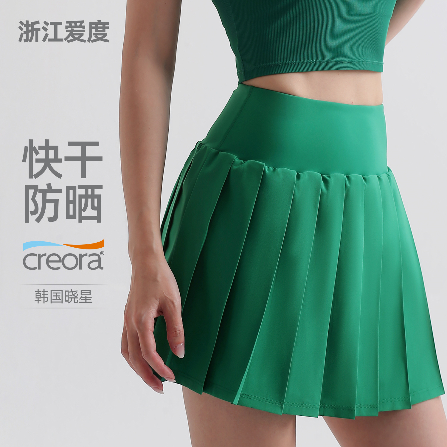 跑步健身房运动短裤裙女夏季薄款防走光百褶短裙高腰弹力瑜伽裙裤