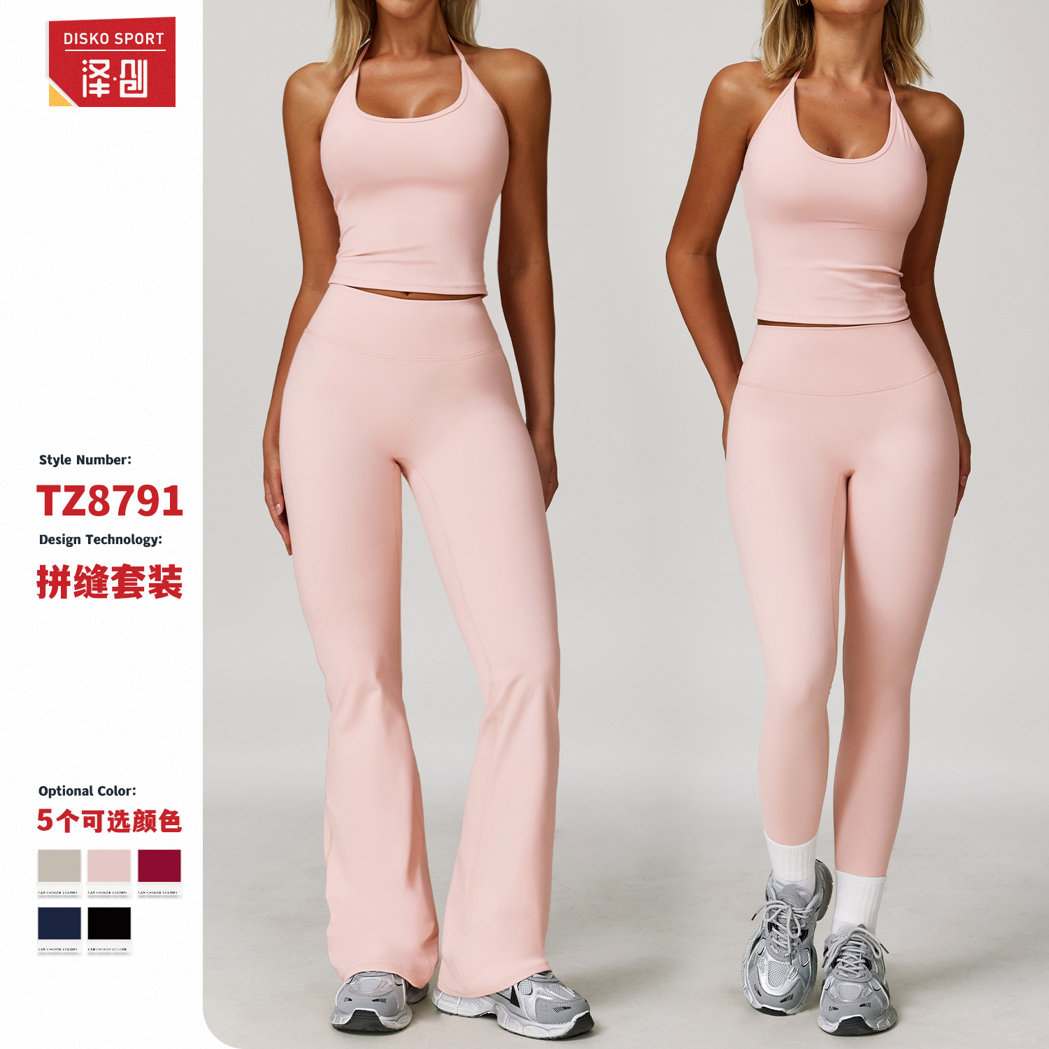 Ze Chuang Set Yoga Punggung Cantik Ketat Gantung Leher Set Olahraga Kebugaran Mudah Dipadu Padan Kasual Pinggang Tinggi Lipat Lipat Cepat Kering 8791