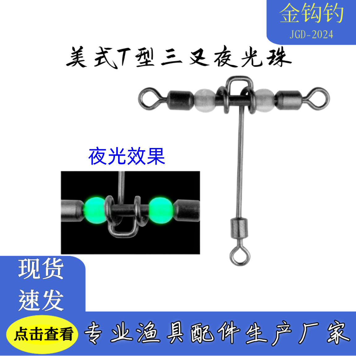 Cincin garpu cincin delapan berbentuk T, cincin Aksesori perlengkapan memancing Luya cincin putar manik-manik bercahaya tiga-garpu Amerika grosir
