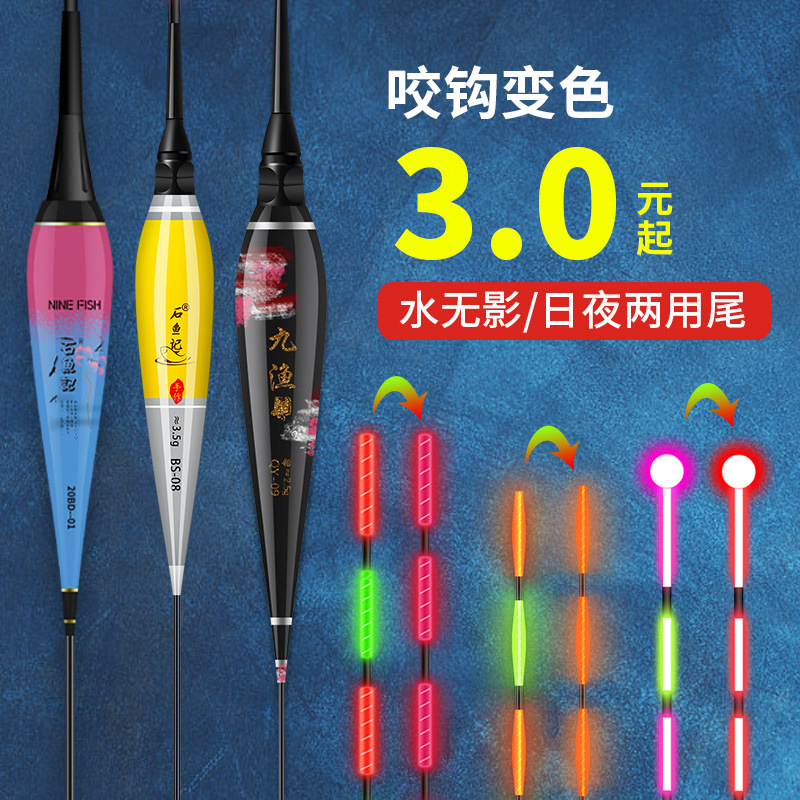 Pengapung elektronik menyala dalam gelap warna kait pelampung bercahaya alarm umpan apung dengan baterai siang dan malam penggunaan ganda pelampung ikan