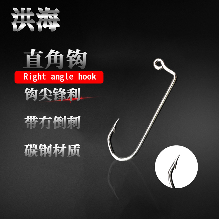 Kait pancing baja karbon tinggi, kait sudut lurus kepala berduri, perlengkapan memancing kait pancing, peralatan memancing Luya, kait sudut lurus