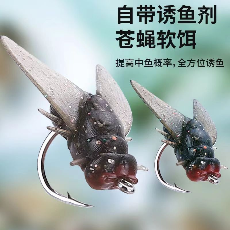 Umpan lembut kait lalat Luya memancing dengan mulut putih dan mulut kuda simulasi umpan palsu serangga Luya aditif ikan