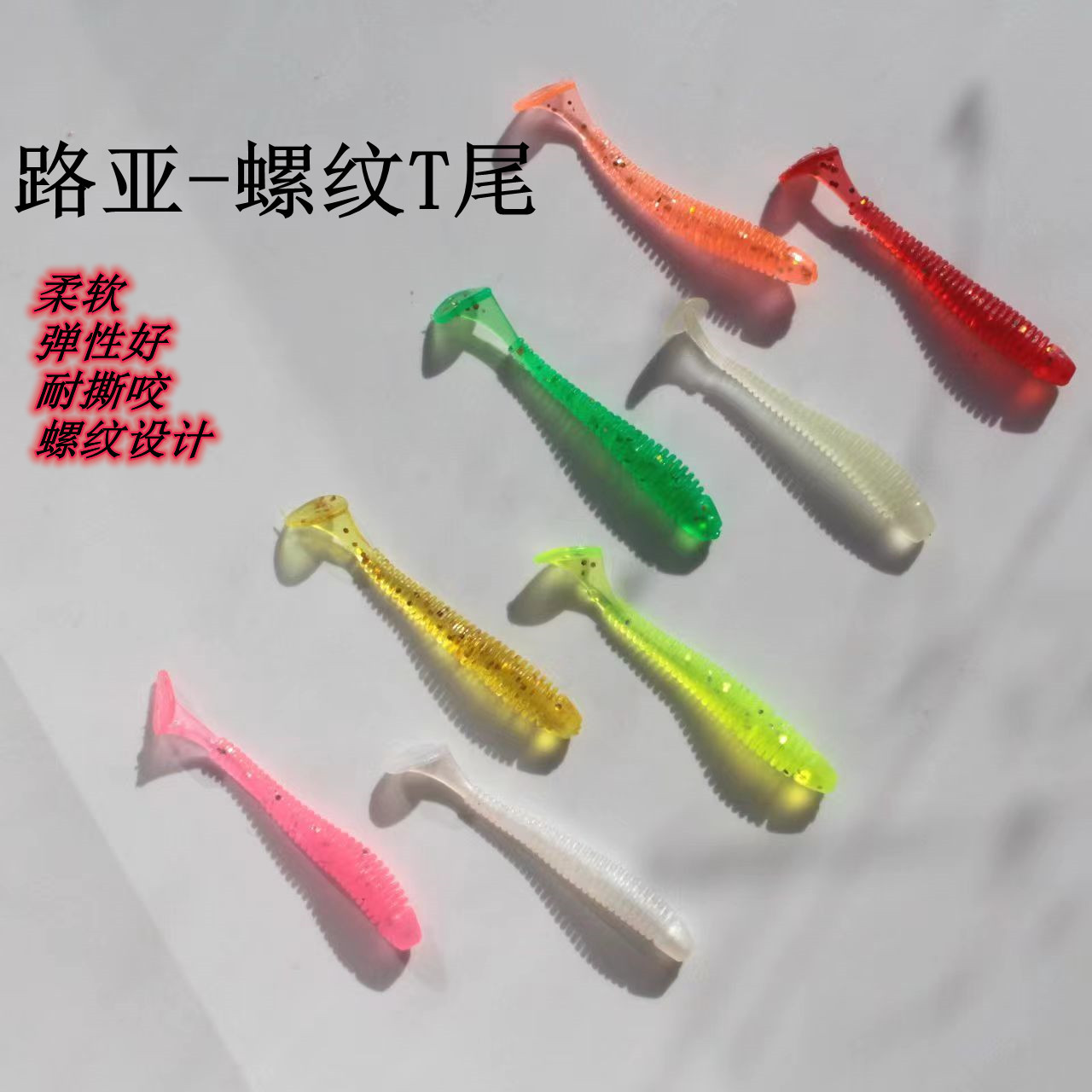Luya benang T ekor umpan lembut 8 warna umpan kepala cacing lunak kait umpan pancing palsu