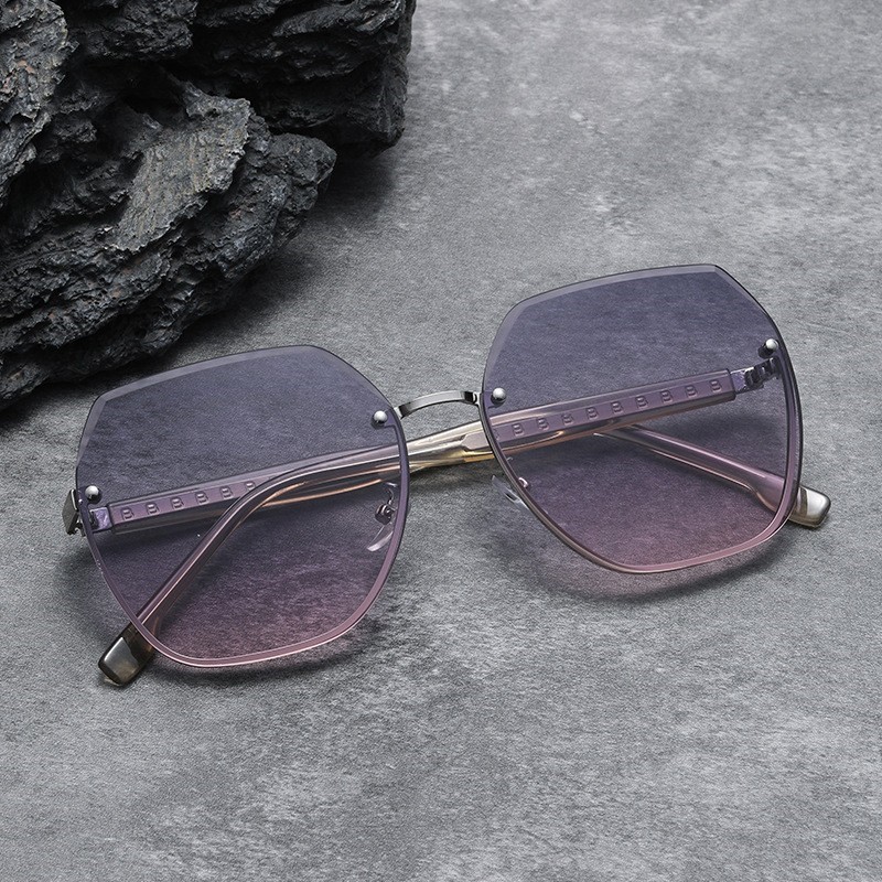 巴宝莎时尚无框切边女士气质方框太阳镜旅行出片遮阳防晒墨镜显瘦