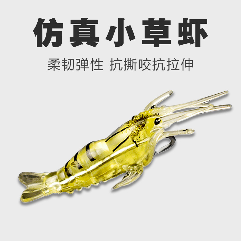 Luya umpan lembut udang rumput 4cm udang bionik dengan kait bercahaya umpan udang palsu kuning lunak umpan Luya dengan kait