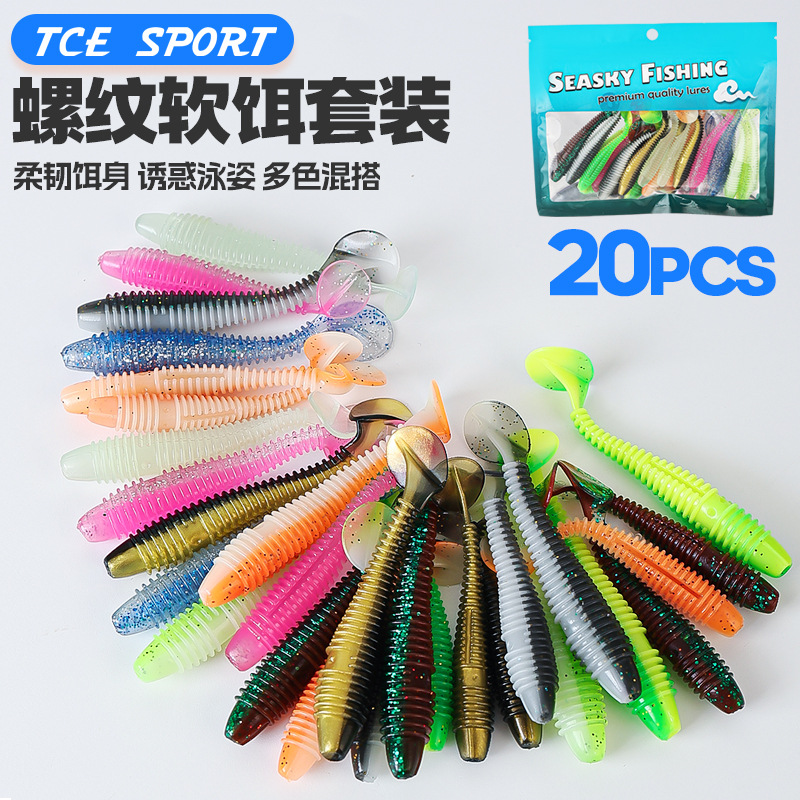 Taiyu 20 pasang sekrup ekor T umpan umpan umpan palsu Luya plus cacing lunak