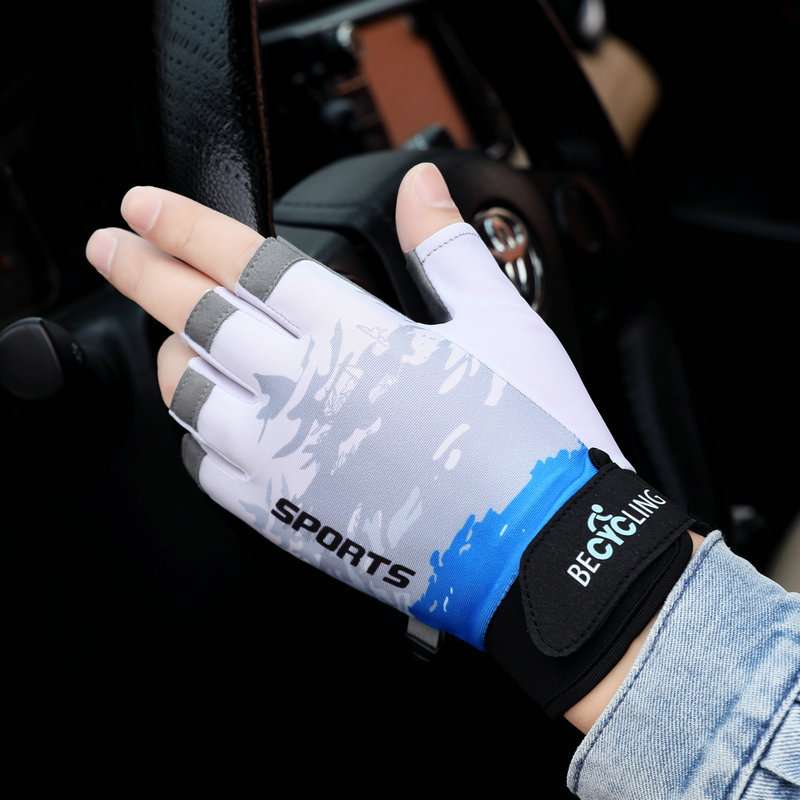Sarung tangan pria pelindung matahari es, sarung tangan sutra panjang layar sentuh tipis bersepeda musim panas jari terbuka setengah jari memancing grosir