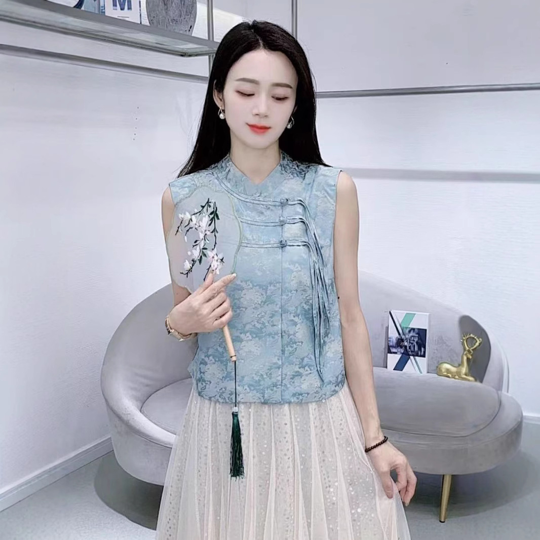 Rompi Gaya Tiongkok Baru Retro Rompi Wanita Model Baru Musim Panas 2025 Atasan Rompi Tanpa Lengan Menutupi Daging Terlihat Kurus Gaya Barat Model Baru Musim Panas 2025