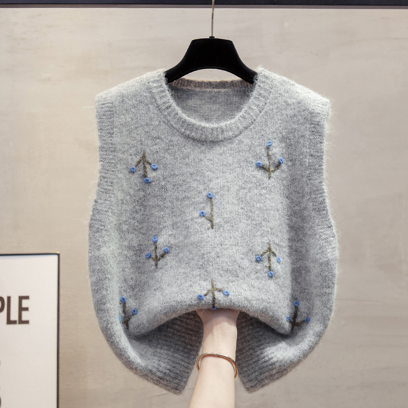 手工绣花圆领针织马甲背心女2025春秋新款宽松外穿马夹毛衣坎肩潮