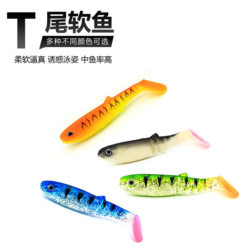 Luya umpan lembut 8CM6g miniatur umpan ekor 16 Warna T, produk peralatan memancing umpan palsu bionik kualitas tinggi