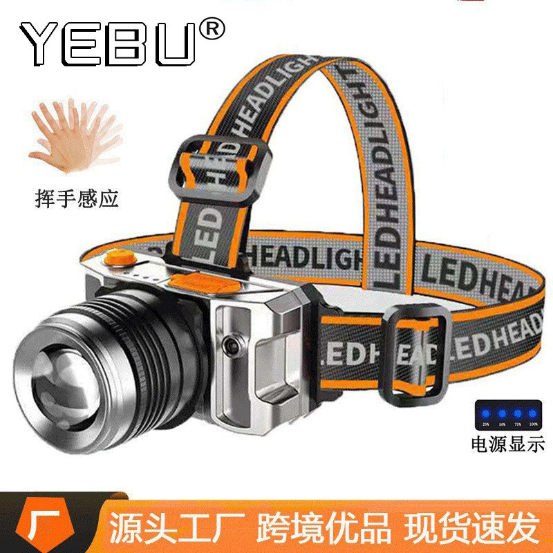 Grosir lampu depan LED induksi pengisian harta karun daya tinggi lampu penambang luar ruangan cahaya kuat dipasang di kepala lampu pancing zoom