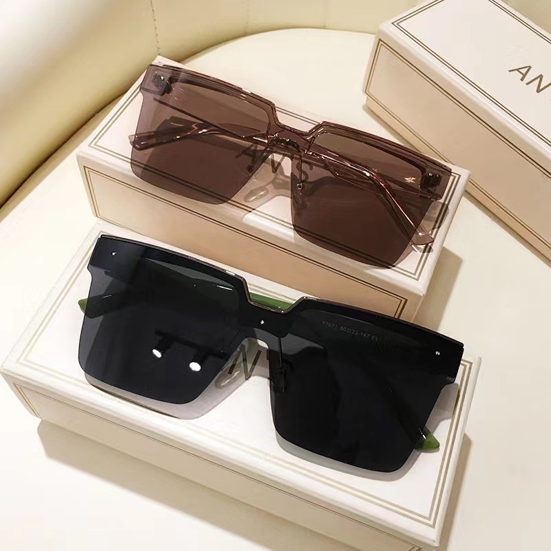 Kacamata hitam bingkai cokelat Pria Wanita, kacamata hitam kelas atas tahan matahari keren tahan UV gaya Korea modis kotak