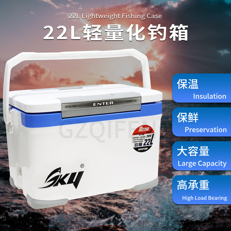 SKY kotak pancing 22L multifungsi, peralatan memancing inkubator berkemah luar ruangan ringan, penutup terbuka ganda portabel kapasitas besar 22L