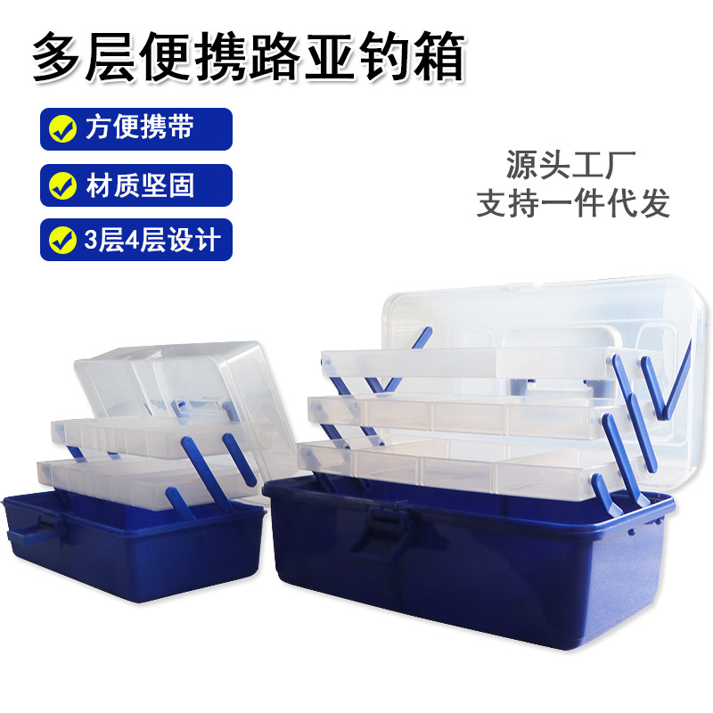 Kotak memancing Luya plastik transparan, 3 lapisan 4-lapisan kotak penyimpanan umpan lipat kotak peralatan memancing Luya portabel
