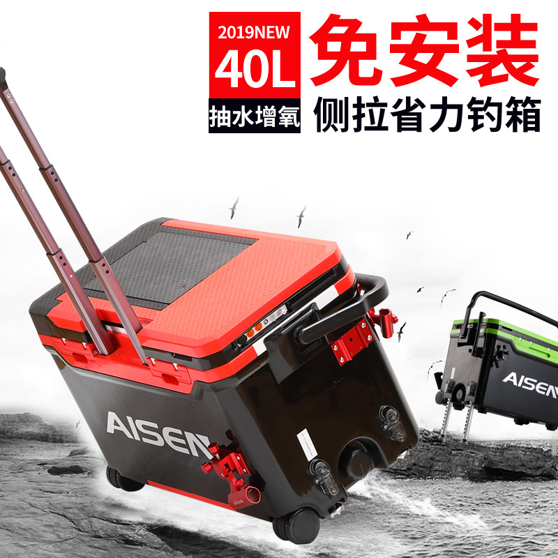 Essen kotak pancing multifungsi, kotak memancing roda tarik sisi, set lengkap 40 liter kotak ikan baru 2024