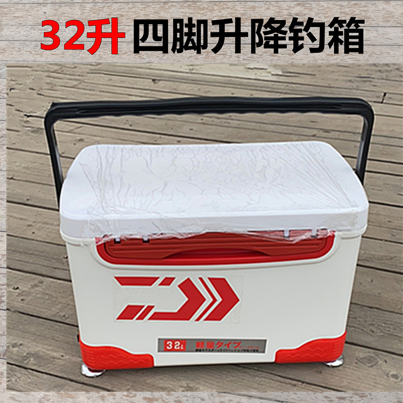 Kotak pancing 32 liter, kotak pancing Pu angkat empat kaki dengan kotak dalam tali pancing tahan tekanan, kotak ikan hidup berpendingin