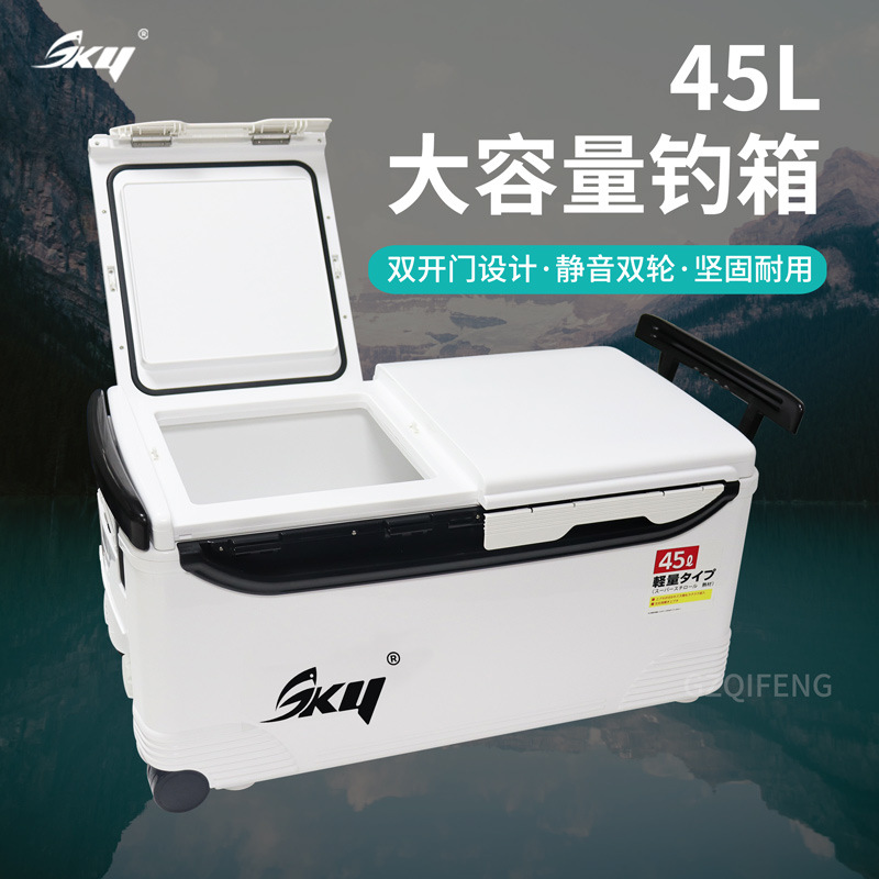 SKY45L kotak inkubator memancing pintu ganda, kotak penyimpanan luar ruangan, peralatan memancing laut kapasitas besar, dapat duduk