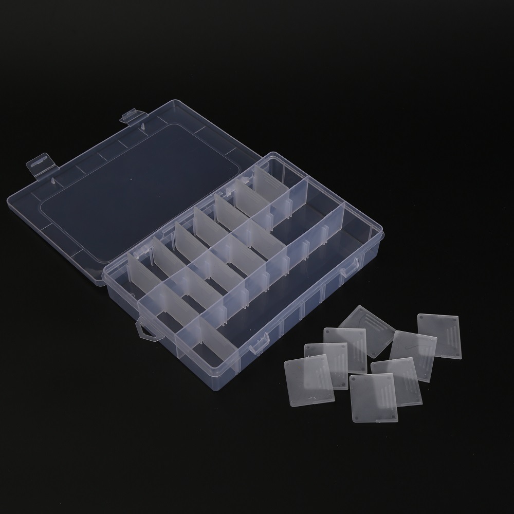 24 kotak perlengkapan plastik transparan, kotak penyimpanan suku cadang perhiasan komponen elektronik dapat dilepas
