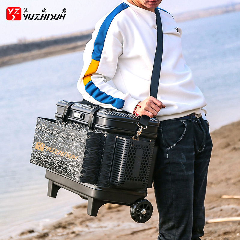 Casing troli memancing kapasitas besar, kotak pelindung ikan cangkang keras dudukan dapat dilepas multifungsi memancing kelas atas