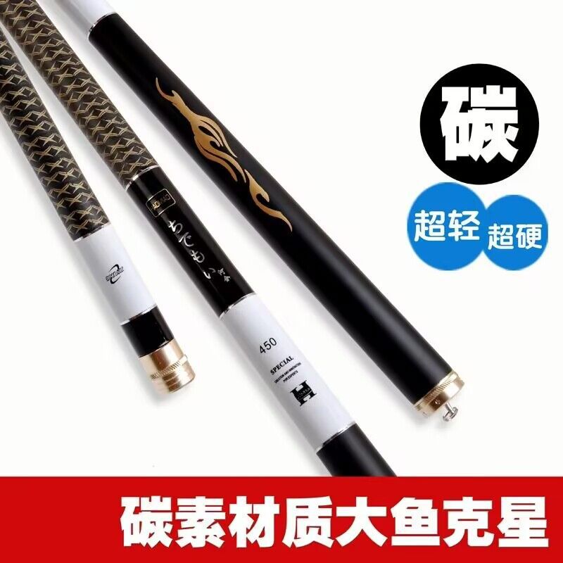 Joran pancing karbon 19 dapat diatur, joran pancing meja 6h model panjang, joran pancing karper warna hitam