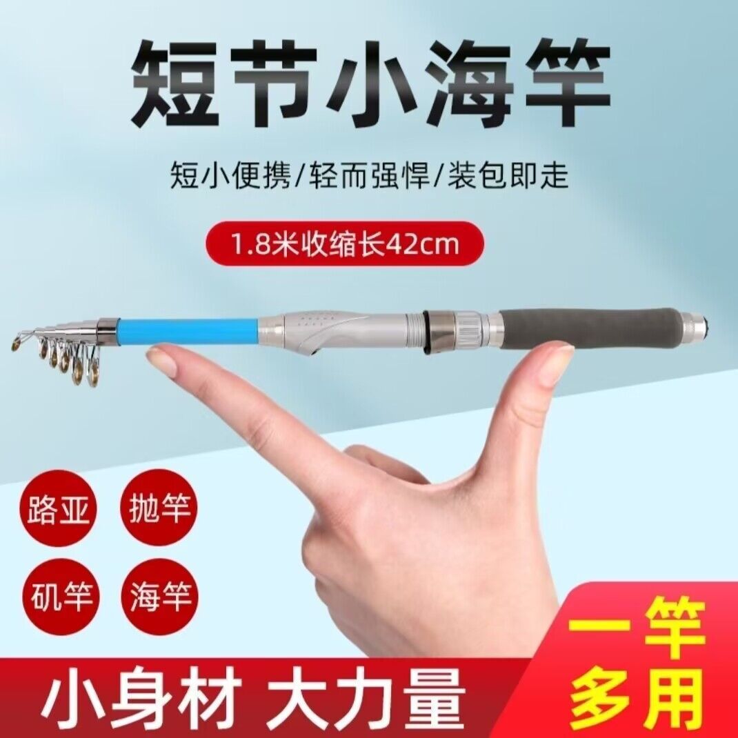 Tongkat pancing laut, FRP Mini kecil lintas batas grosir bagian ultra-pendek portabel keras dapat disesuaikan ultra-ringan tembakan jauh