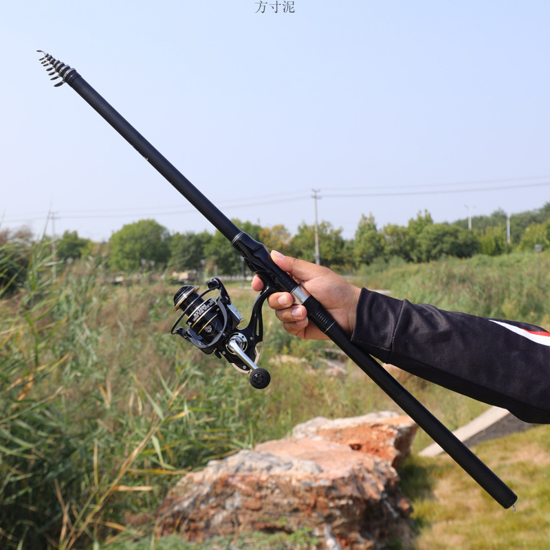 Joran pancing hitam grosir siap kirim, joran pancing 5H berbahan kain karbon yang diperkuat silang, joran pancing ikan besar karbon tinggi, joran pancing black pit.