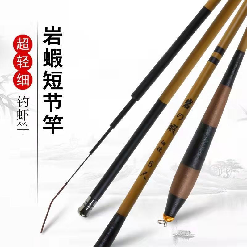 Rock shrimp joran pancing ultra ringan ultrfine halus 37 tongkat tangan bagian pendek dapat disesuaikan joran udang karbon tongkat pancing ikan mas bambu kuning 1.8-4.5 m