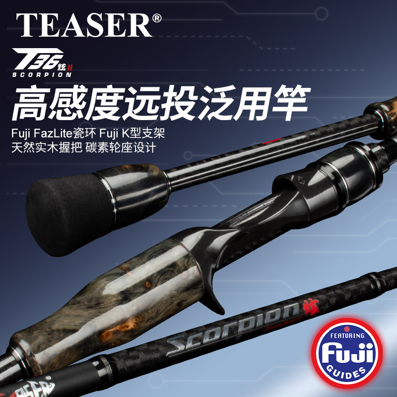 TEASER Joran Pancing T36 Baru dengan Gagang Kayu Solid, Serat Karbon untuk Lemparan Jauh, Pemandu Fuji, untuk Memancing Ikan Bass dan Pike.