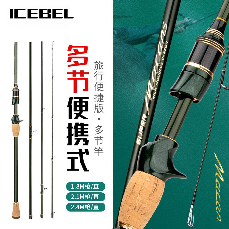 Joran pancing portabel empat bagian, tongkat pancing karbon, joran perjalanan bisnis, portabel, empat bagian, joran pancing laut, 1.8/2.1/2.4