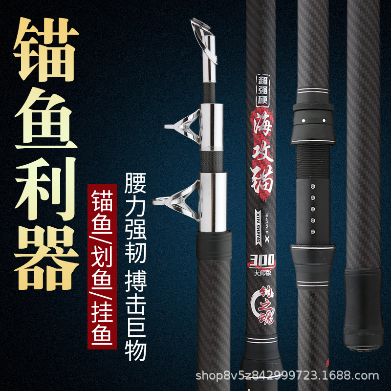 Tongkat pancing jangkar, super keras super ringan batang tembakan panjang visual jangkar ikan batang khusus raksasa melempar batang pancing setelan penuh