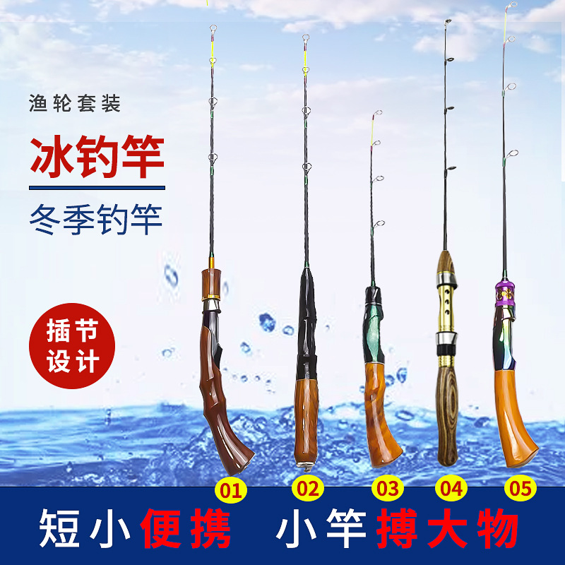 Joran pancing Luya es padat, tongkat pancing Luya kecil portabel ultra pendek musim dingin 60cm 80cm 100cm
