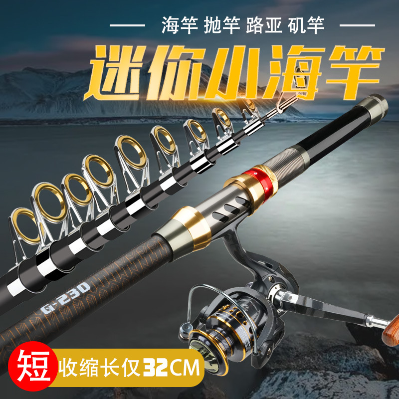Joran pancing teleskopik portabel Mini, tongkat pancing bagian pendek ultra pendek, joran lempar untuk memancing di laut kecil