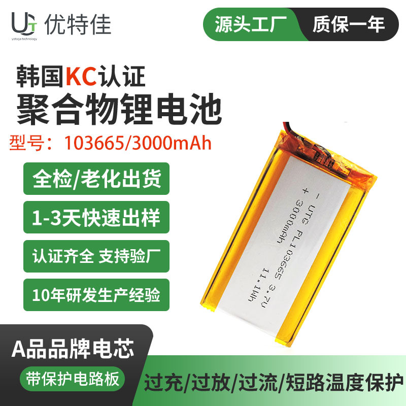 Baterai lithium polimer bersertifikasi KC 103665 3.7V 3000mAh soft pack baterai lithium ternary untuk lampu penghangat ruangan.