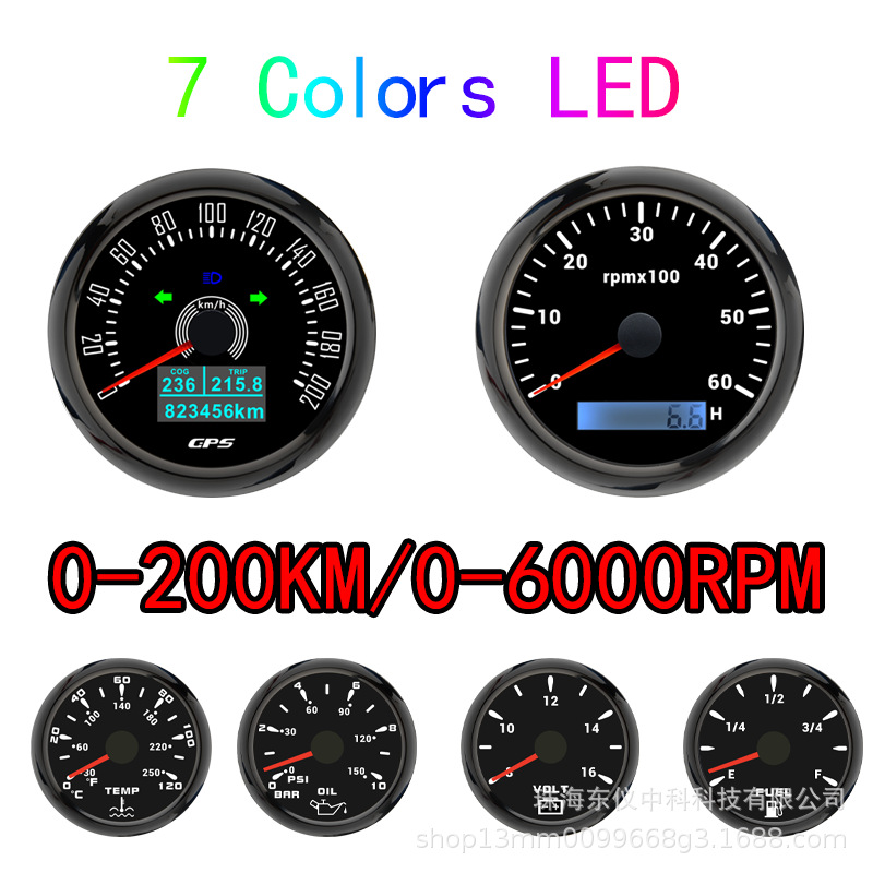 Produsen Langsung Pasokan Kapal Motor Yacht Sepeda Motor GPS Speedometer 7 Warna Lampu Belakang 85mm0-200kmh