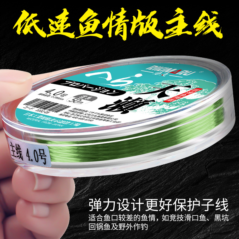 Senar pancing utama Taiwan, barang asli super kuat elastis tali nilon 50 m lubang hitam kompetitif non-rolling super lembut pancing sub-line