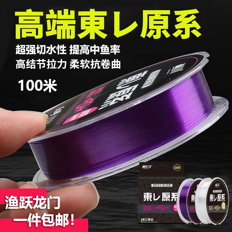 Dongli sutra mentah 100 m garis utama ungu transparan sub-line canggih lembut kompetitif senar pancing nilon tahan aus